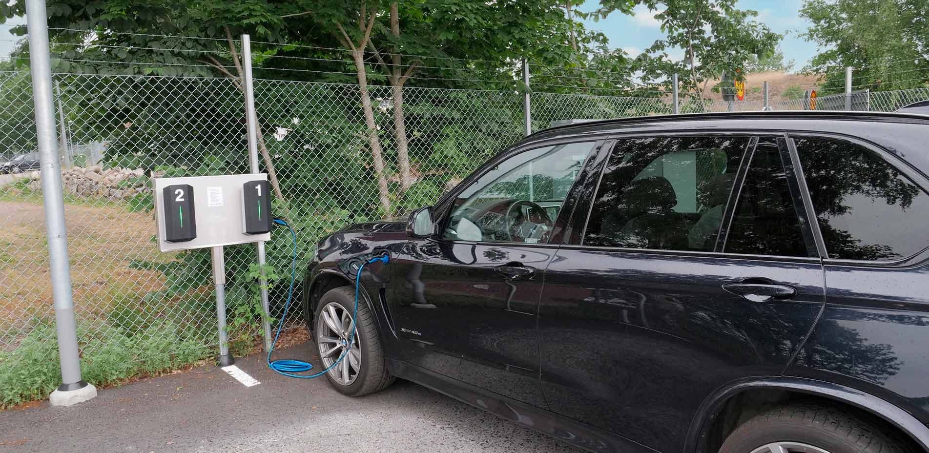Passa på att få elbilen laddad under tiden du reser. På parkeringen som ligger precis vid flygplatsen i Kalmar finns laddstolpar som är anslutna till Laddkoll.